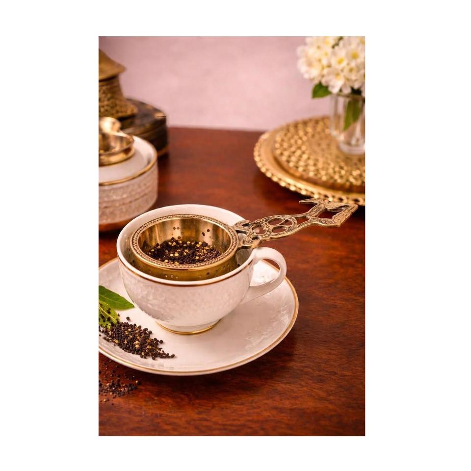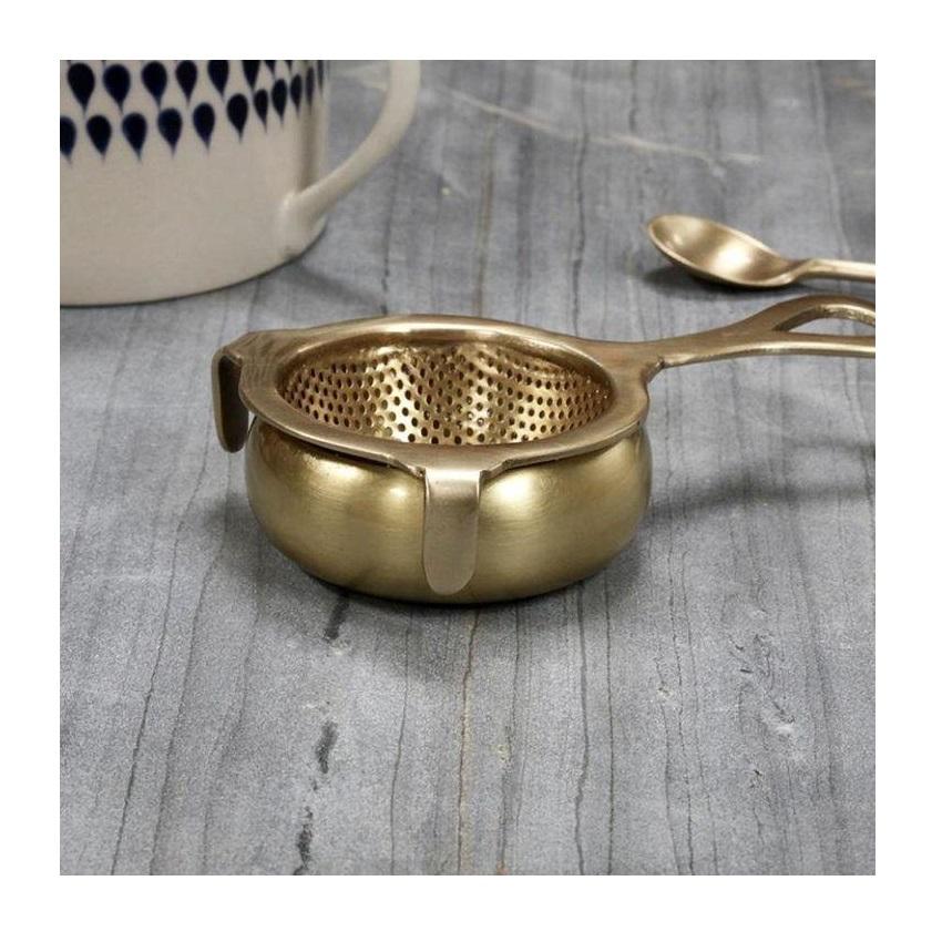 ที่กรองชาแบบพกพา ทำจากทองเหลือง ดีไซน์หรูหรา รูปทรงกลม ใช้ซ้ำได้ สำหรับกาน้ำชา