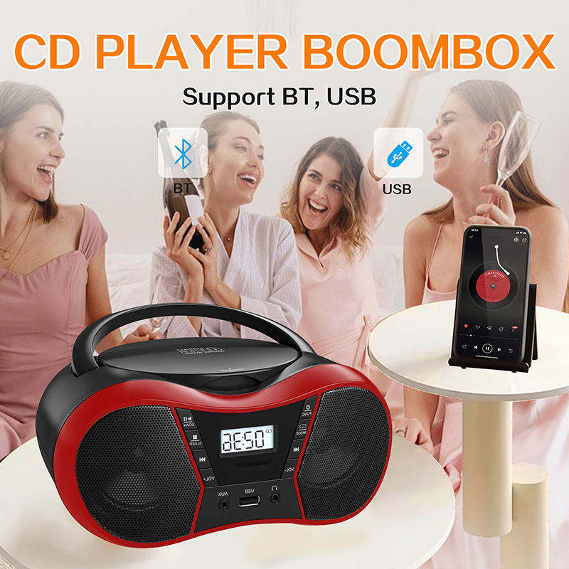 เครื่องเล่นซีดีพกพา บูมบ็อกซ์ บลูทูธ วิทยุ FM ช่องเสียบ USB AUX ลำโพงคู่ ใช้ไฟ AC/DC เสียงสเตอริโอ สำหรับใช้ในบ้านและนอกบ้าน