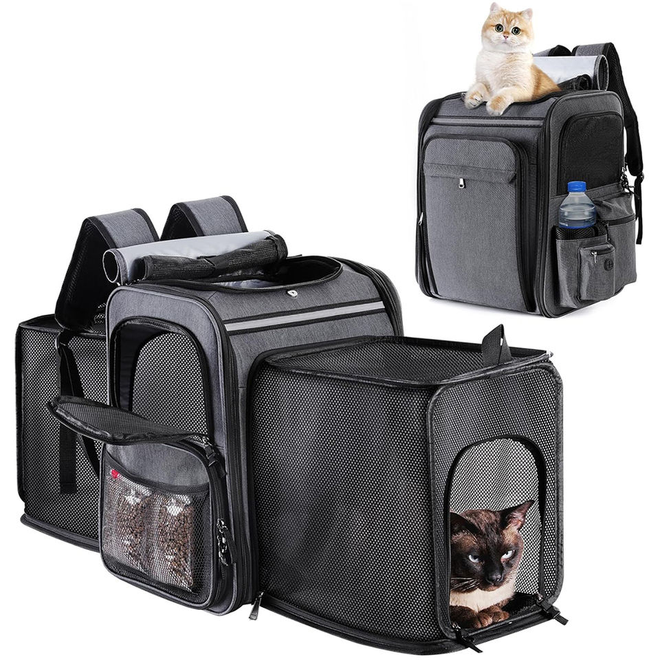 กระเป๋าเป้สะพายหลังสำหรับแมวขนาดใหญ่และสุนัขขนาดเล็ก สำหรับเดินป่า ท่องเที่ยวกลางแจ้ง ระบายอากาศได้ดี ขยายได้