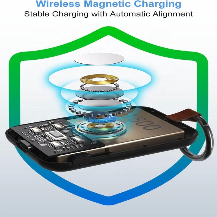 Portable Charger 1800Mah Wireless Keychain Charger Power Bank for iphone Travel Battery Pack Magnetic Iwatch Charger Powerbank