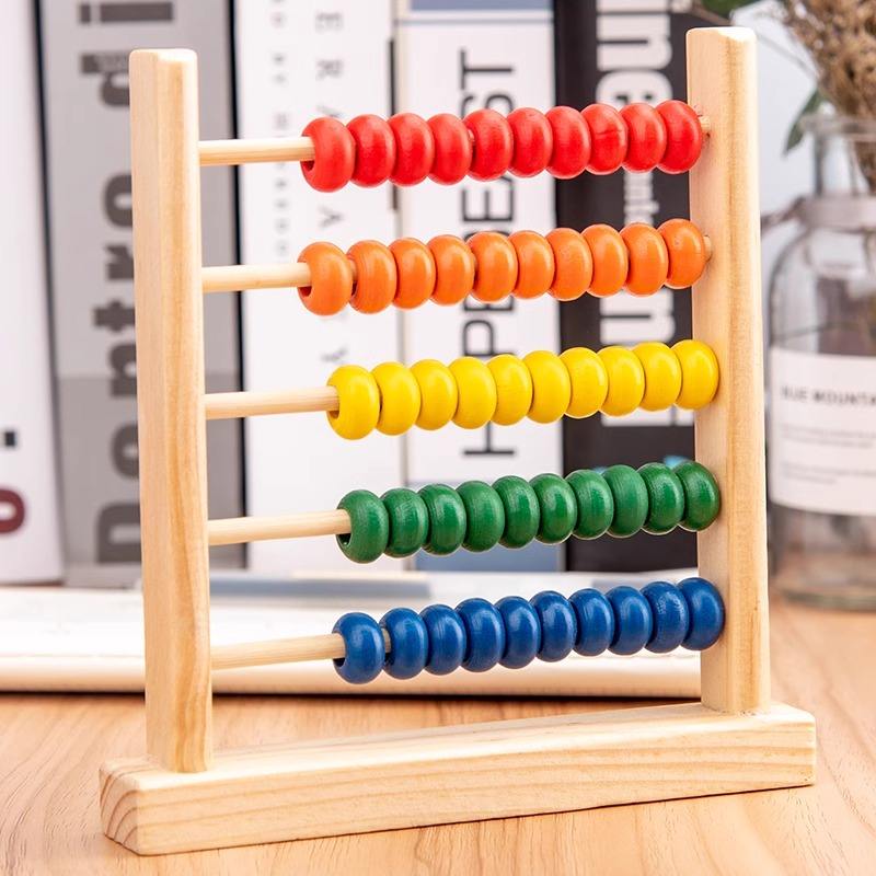 ลูกคิดไม้คลาสสิกแบบพกพาพร้อมลูกปัดหลากสีเทคนิคการวาดคณิตศาสตร์และการนับตัวเลข