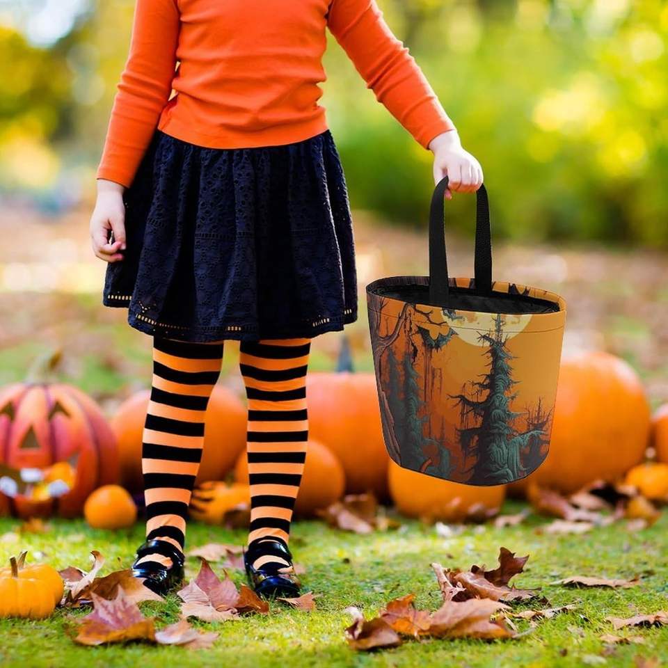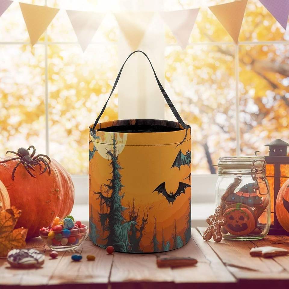 ตะกร้าดีไซน์ค้างคาวฟักทองป่าสยองขวัญพับเก็บได้แบบพกพาใช้ซ้ำได้