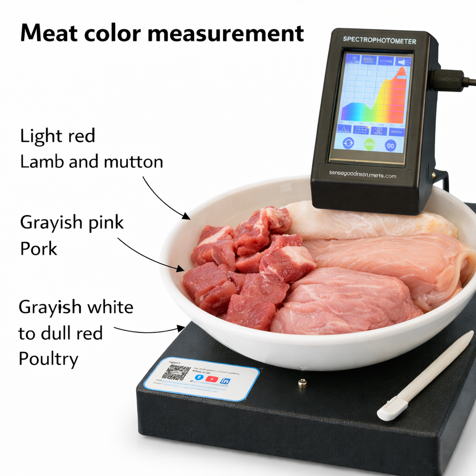 เครื่องวัดสีแบบพกพาสำหรับทดสอบความสดของเนื้อสัตว์และปลาโดยใช้ Cie Lab Lch Reflectance