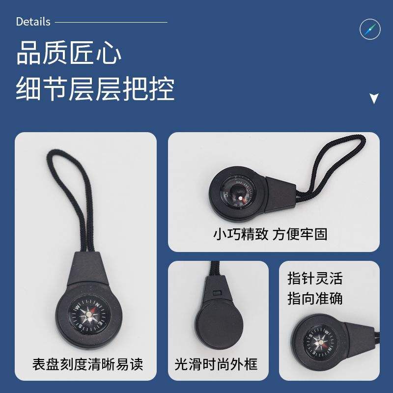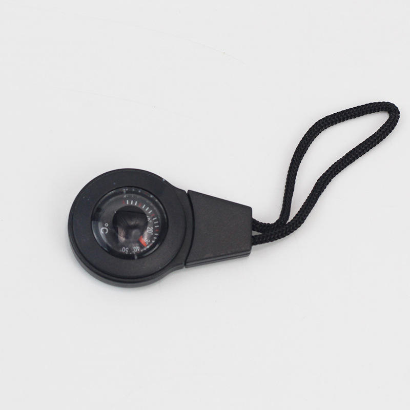 เข็มทิศพกพาพร้อมเทอร์โมมิเตอร์และสายคล้องคอสำหรับการเดินป่า ท่องเที่ยว ตั้งแคมป์ เครื่องมือนำทางกลางแจ้ง หน้าปัดสีดำ แสดงผลแบบเข็มชี้