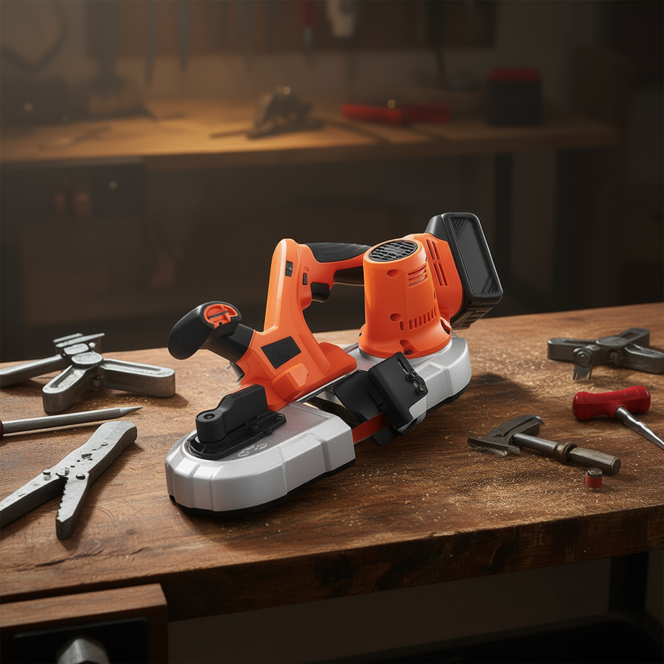 เลื่อยสายพานไร้สายแบบพกพา 20V ตัดลึก 2.56 นิ้ว ปรับความเร็วได้ เครื่องมือตัดโลหะแบบไร้แปรงถ่าน