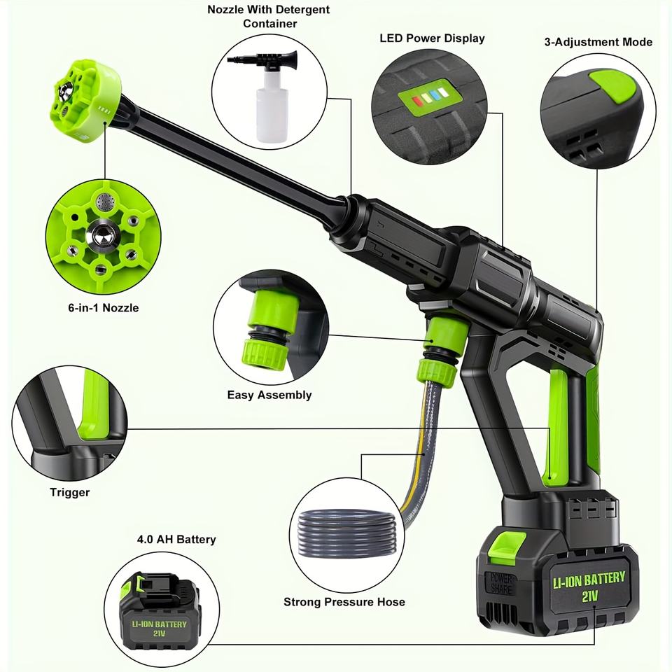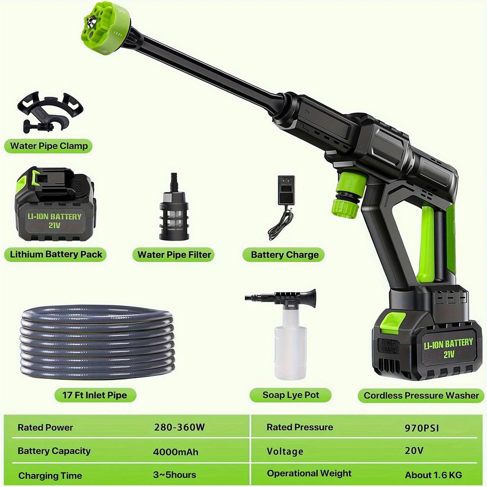 ปืนฉีดน้ำแรงดันสูงแบบพกพาไร้สาย แบตเตอรี่ลิเธียม 4000mAh เครื่องฉีดน้ำแรงดันสูงแบบมือถือ อเนกประสงค์สำหรับทำความสะอาดรถยนต์และพื้นผิวต่างๆ