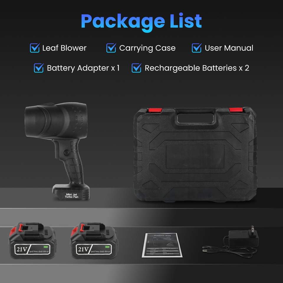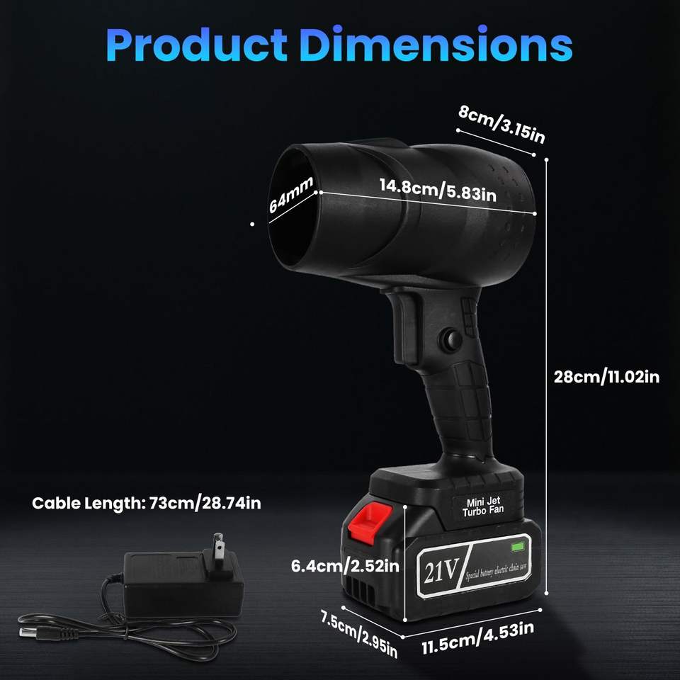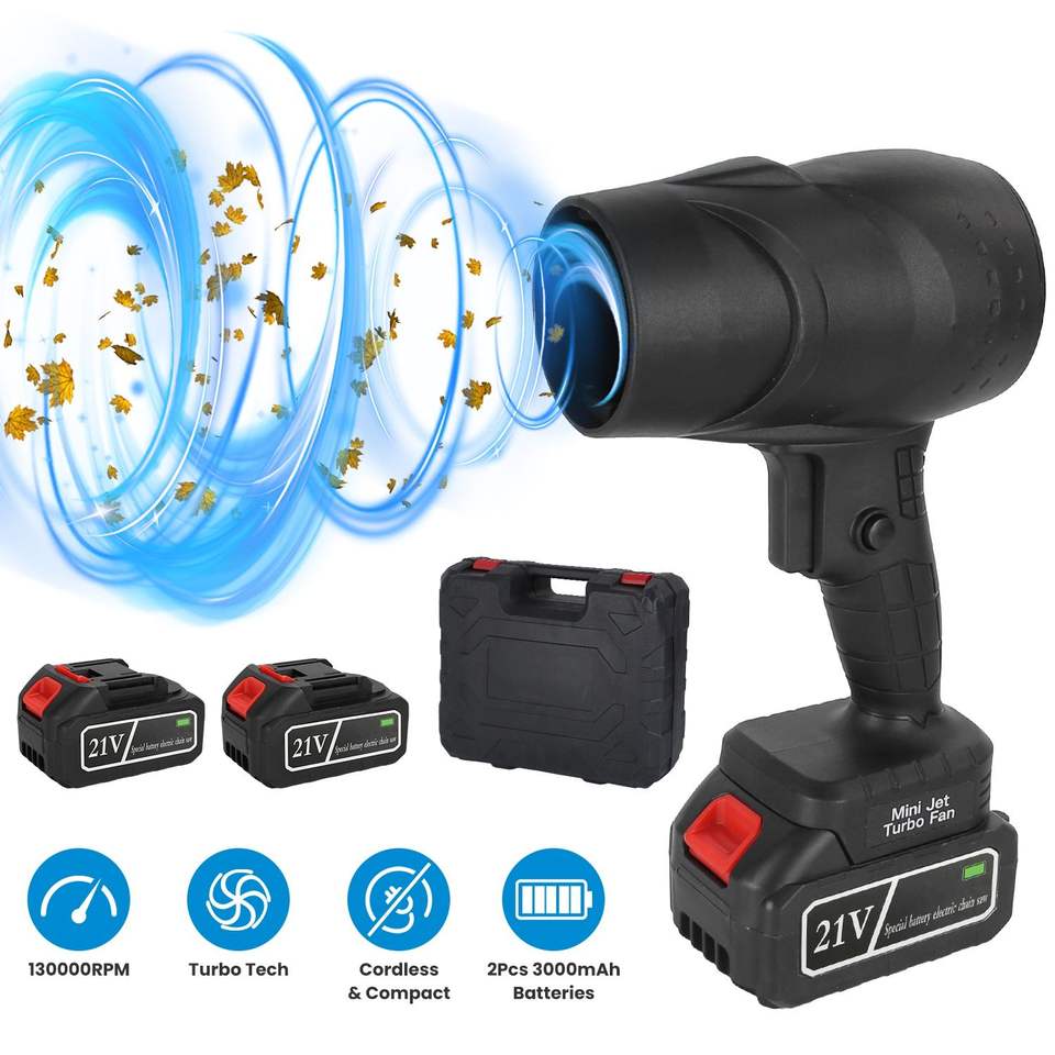 เครื่องเป่าลมไร้สายแบบพกพา ความเร็วลมสูง 130000 รอบต่อนาที มอเตอร์ 1000 วัตต์ ดีไซน์ไร้สาย พร้อมกระเป๋าสำหรับพกพา ใช้ได้ทั้งในรถยนต์/ที่บ้าน