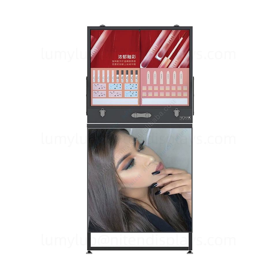 ชั้นวางเครื่องสำอางตั้งพื้นแบบพกพาขาตั้งโลหะรวมกับแท่นโชว์แบบพับได้สำหรับร้านเสริมสวย