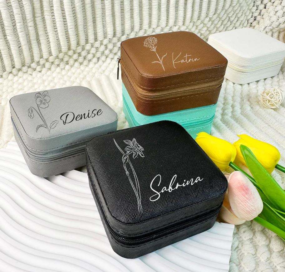กล่องใส่เครื่องประดับสำหรับเดินทางขนาดเล็กพิมพ์ลายนูนโลโก้แบบพกพากล่องใส่ต่างหูแบบซิปปิดทำจากหนังสี่เหลี่ยม