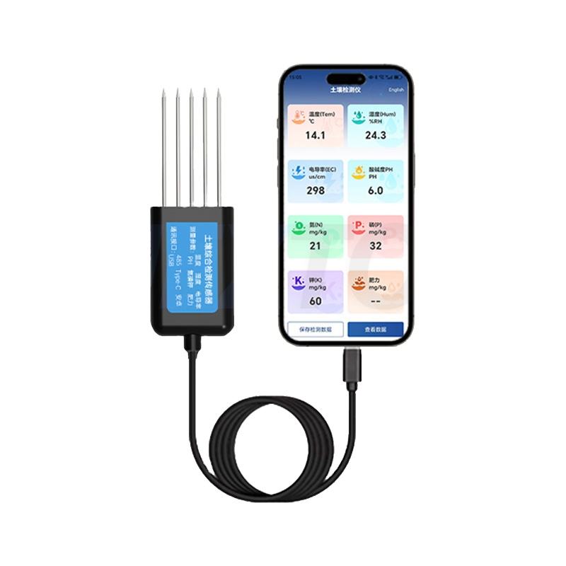 อุปกรณ์จัดเก็บข้อมูลแบบพกพาเซ็นเซอร์ดิน USB Type-C พร้อมแอป8-in-1เครื่องทดสอบทางการเกษตรสำหรับการวัดอุณหภูมิและค่า pH