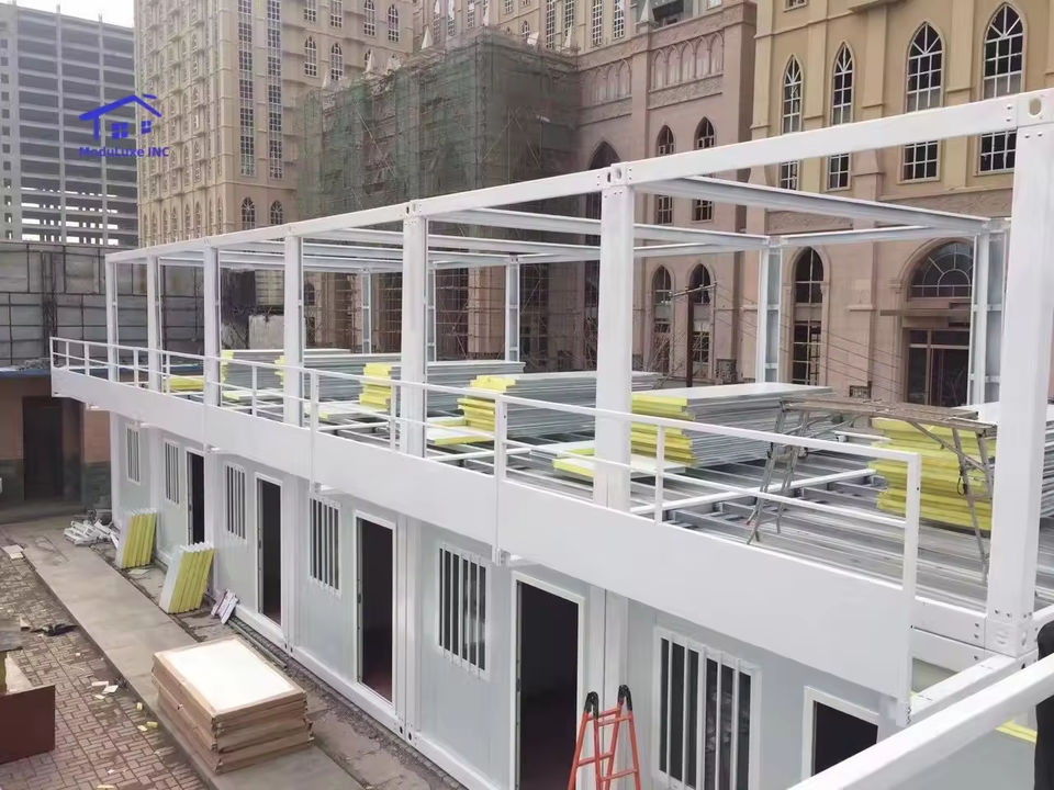 บ้านสำเร็จรูปแบบโมดูลาร์ทันสมัย แบบพกพา ถอดประกอบได้ โครงสร้างเหล็กเคลื่อนที่ ใช้เป็นบ้านสำนักงานหรือเก็บของ