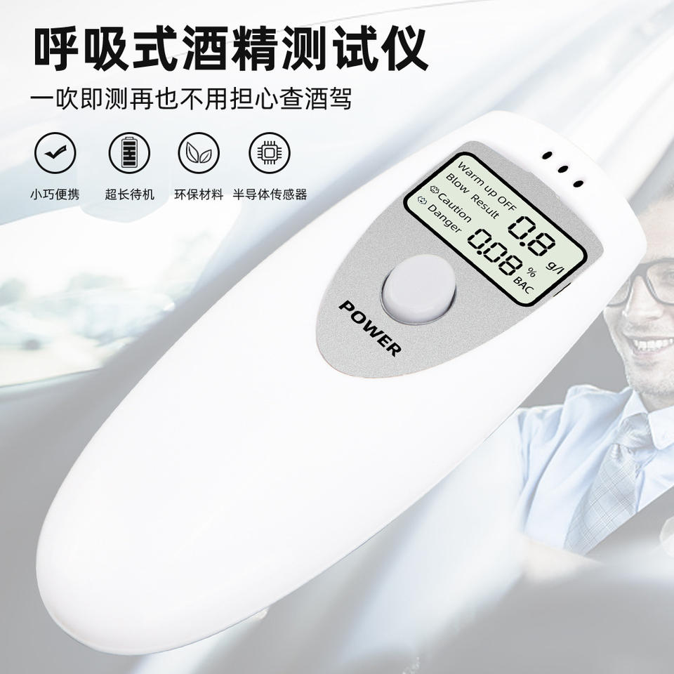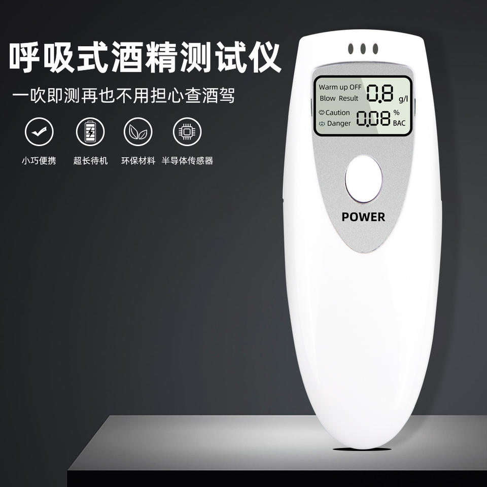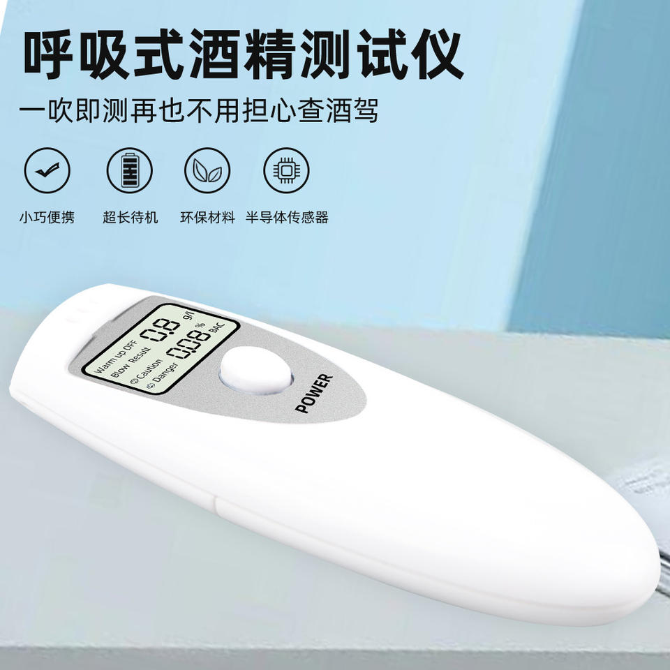 เครื่องวัดแอลกอฮอล์แบบพกพา ความละเอียด 0.001 พร้อมเซ็นเซอร์เซมิคอนดักเตอร์ สำหรับตรวจจับการดื่มแล้วขับ