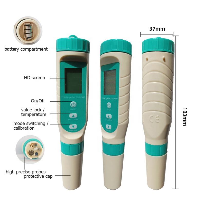 ปากกาทดสอบคุณภาพน้ำแบบพกพา 7 in 1 วัดค่า S.G./TDS/EC/PH/ความเค็ม/อุณหภูมิ สำหรับสระว่ายน้ำ น้ำดื่ม และตู้ปลา
