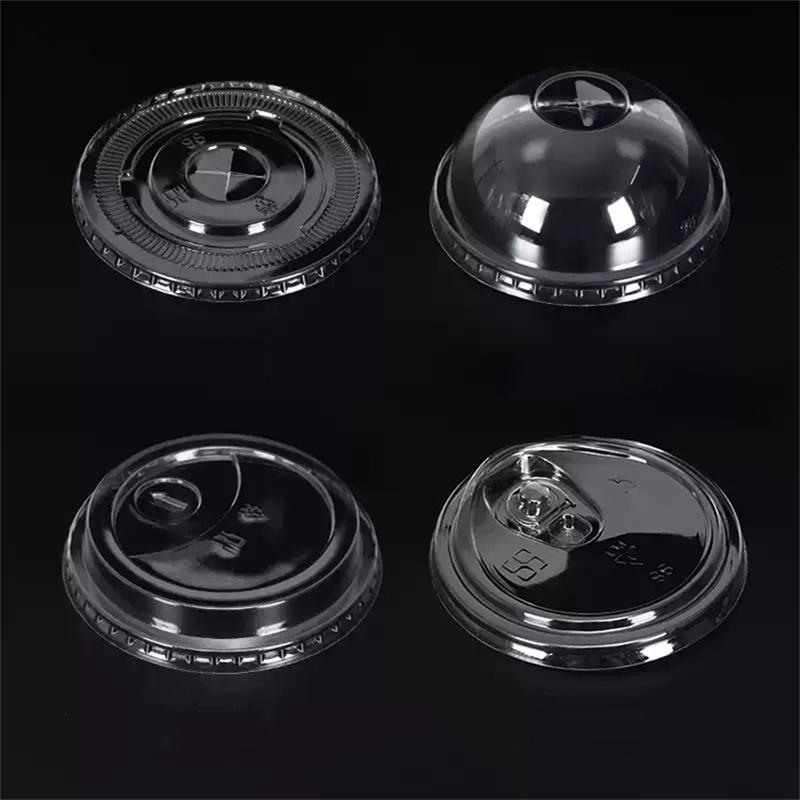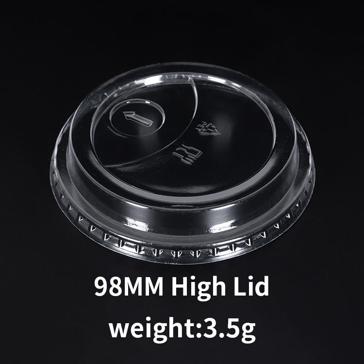 ฝาปิดถ้วยพลาสติกใส98มม. แบบพกพาที่ใช้แล้วทิ้งที่ปิดทรงโดมสูงสำหรับเลี้ยงกาแฟและเครื่องดื่มฝาขวดแบน