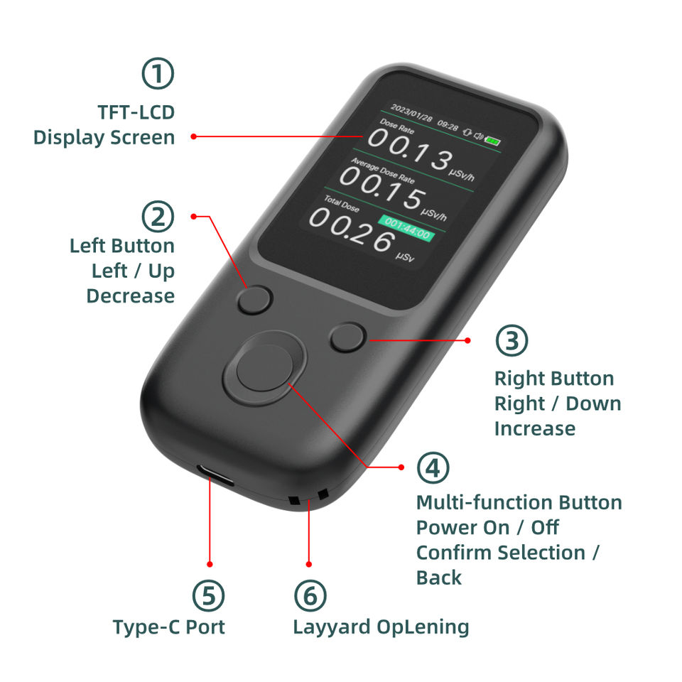 เครื่องวัดรังสีแบบพกพา เครื่องตรวจจับรังสีแกมมา เครื่องตรวจจับรังสีเอกซ์ พร้อมภาษาอังกฤษ เกาหลี และญี่ปุ่น