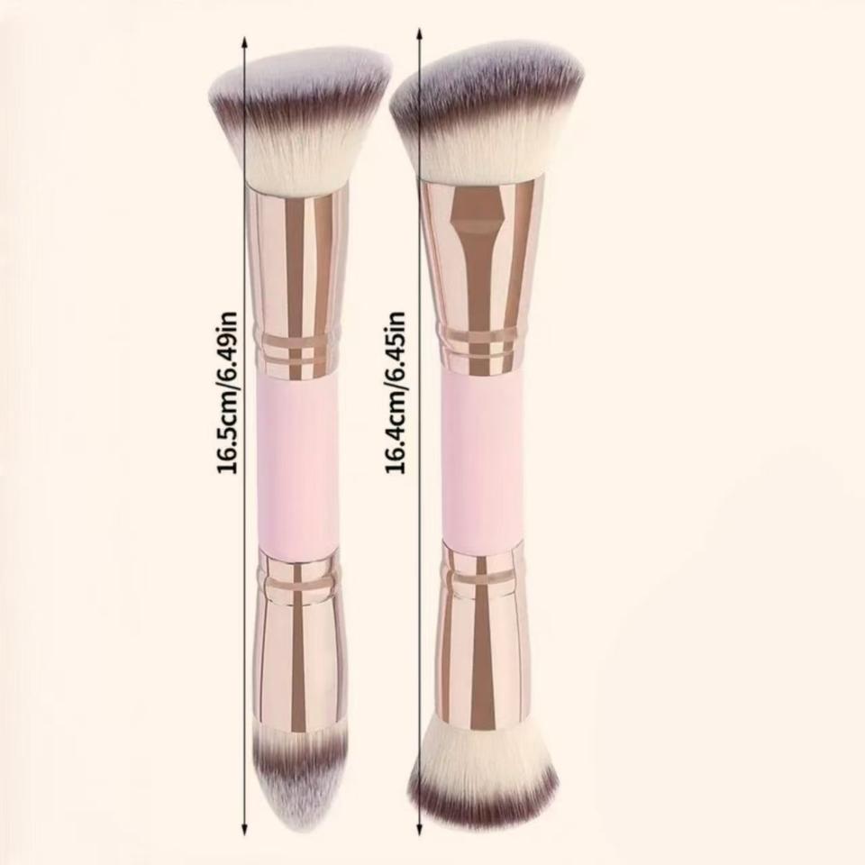 แปรงแต่งหน้าแบบพกพาสองด้าน พร้อมด้ามไม้สังเคราะห์นุ่ม ใช้สำหรับเกลี่ยอายแชโดว์ คอนซีลเลอร์ ใช้ได้กับใบหน้าและดวงตา ชุด 2 ชิ้น