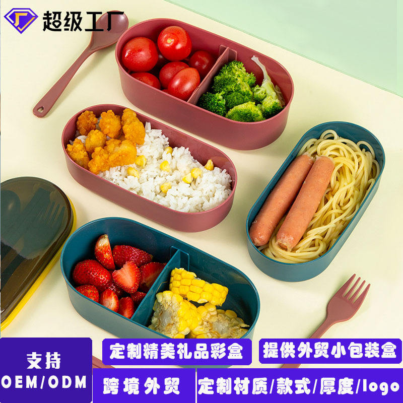 กล่องอาหารกลางวันแบบพกพา 2 ชั้น รูปทรงไข่ สีพื้น ใช้กับไมโครเวฟได้ สำหรับพนักงานออฟฟิศและนักเรียน