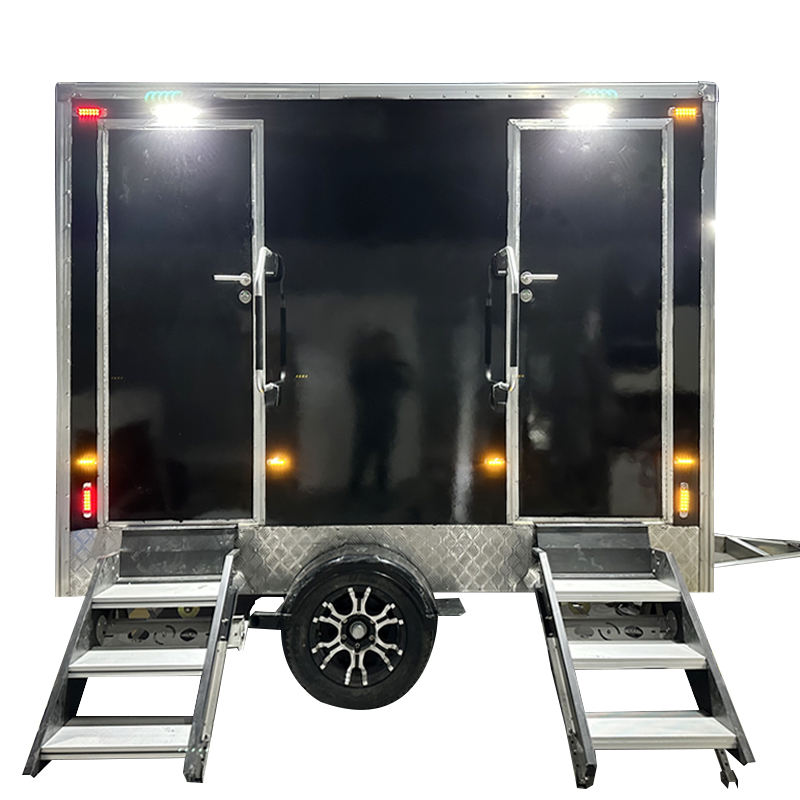 รถพ่วงโถส้วมเคลื่อนที่แบบปรับแต่งได้หรูหราห้องคู่แบบพกพา