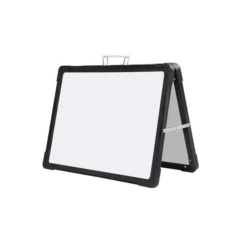 ไวท์บอร์ดแม่เหล็กแบบพกพาสองด้าน พับเก็บได้ พร้อมมุมและหูจับพลาสติก สำหรับสำนักงาน โรงเรียน และบ้าน
