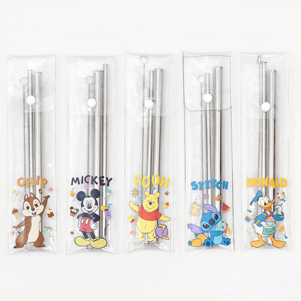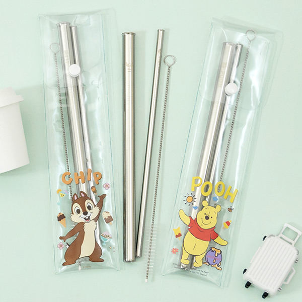 ชุดอาหารเย็นโลหะแบบพกพาทนทาน ลายการ์ตูน พร้อมชุดหลอดสแตนเลสใส