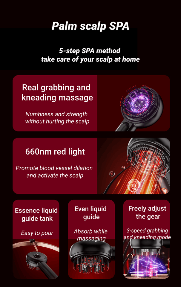 หวีนวดหนังศีรษะบำบัดด้วยแสงสีแดงแบบพกพาได้อุปกรณ์ดูแลเส้นผมแบบชาร์จไฟได้สำหรับความงามที่บ้าน