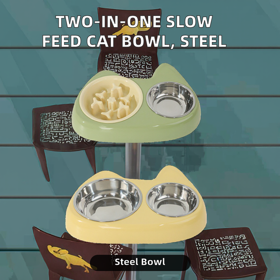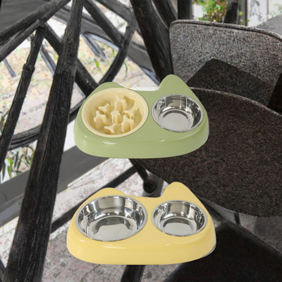 ชามอาหารสัตว์เลี้ยงแบบพกพา สองinหนึ่ง ทำจากสแตนเลส ปลอดภัยต่อสิ่งแวดล้อม ช่วยลดการกินเร็วและป้องกันการสำลัก สำหรับสัตว์ขนาดเล็ก