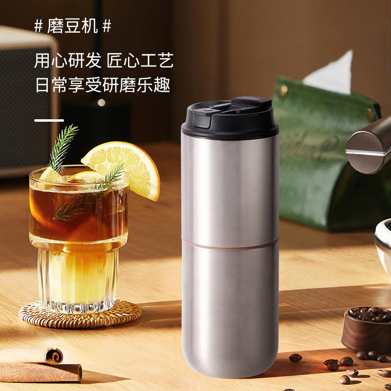 Portable Electric Coffee Grinder With Brew Function Stainless Steel Tumbler For Travel Use 24 Hour Thermal Insulation