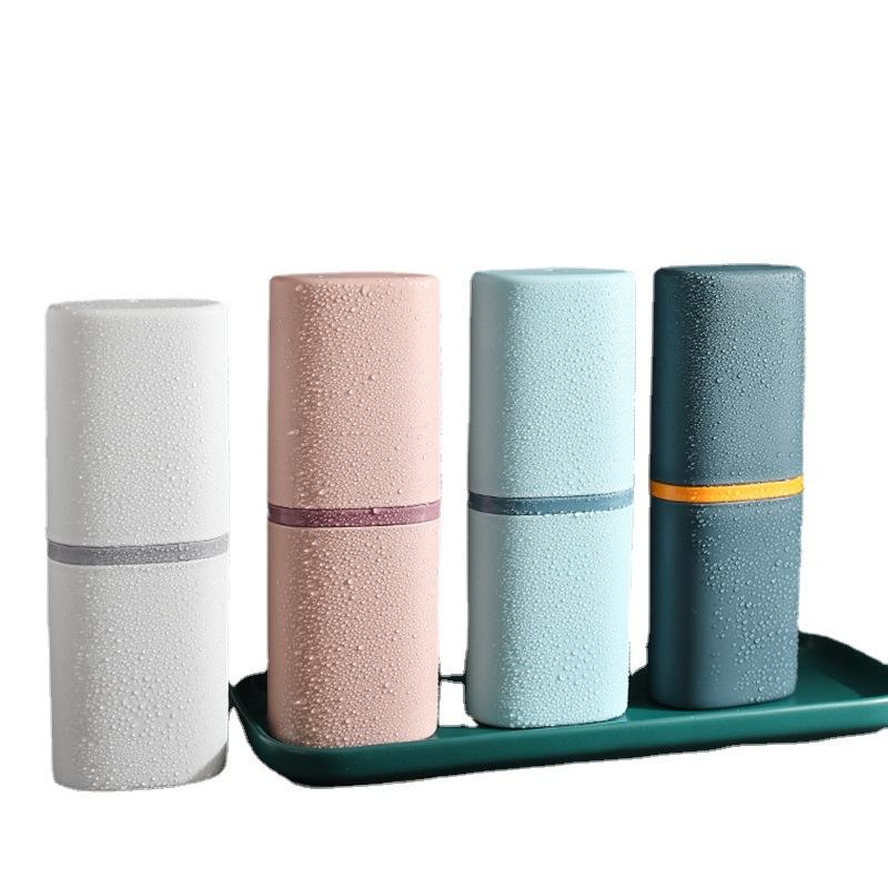 ชุดแปรงฟันไฟฟ้าแบบพกพาพร้อมกล่องใส่อุปกรณ์เดินทางชุดแปรงถ้วยน้ำยาบ้วนปากทำจากพลาสติก