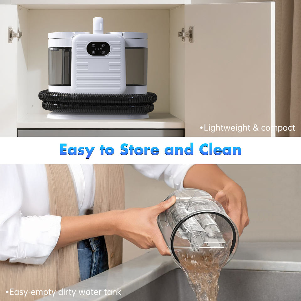 เครื่องล้างพรมไอน้ำแบบมือถือระบบไฟฟ้าแบบพกพาพร้อมเครื่องดูดฝุ่น18Kpa แรงดูดสูงสเปรย์น้ำเย็นสำหรับโซฟารถยนต์ใช้งาน RV