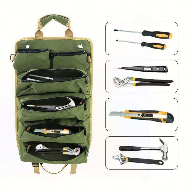 ชุดเครื่องมือช่างไฟฟ้าแบบพกพาพร้อมกระเป๋าคาดเอวแบบใหม่ ดีไซน์ม้วนเก็บได้ กันน้ำ ผลิตจากผ้าใบอ๊อกซ์ฟอร์ด เหล็ก PU โพลีเอสเตอร์ สำหรับงานซ่อมรถยนต์