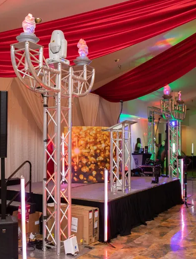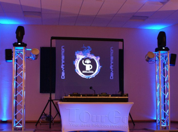 เสาค้ำอะลูมิเนียม F34แบบพกพาพร้อมตัวยึดแบนเนอร์สำหรับใช้ในการทัวร์คอนเสิร์ต