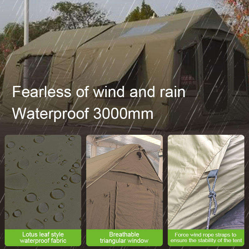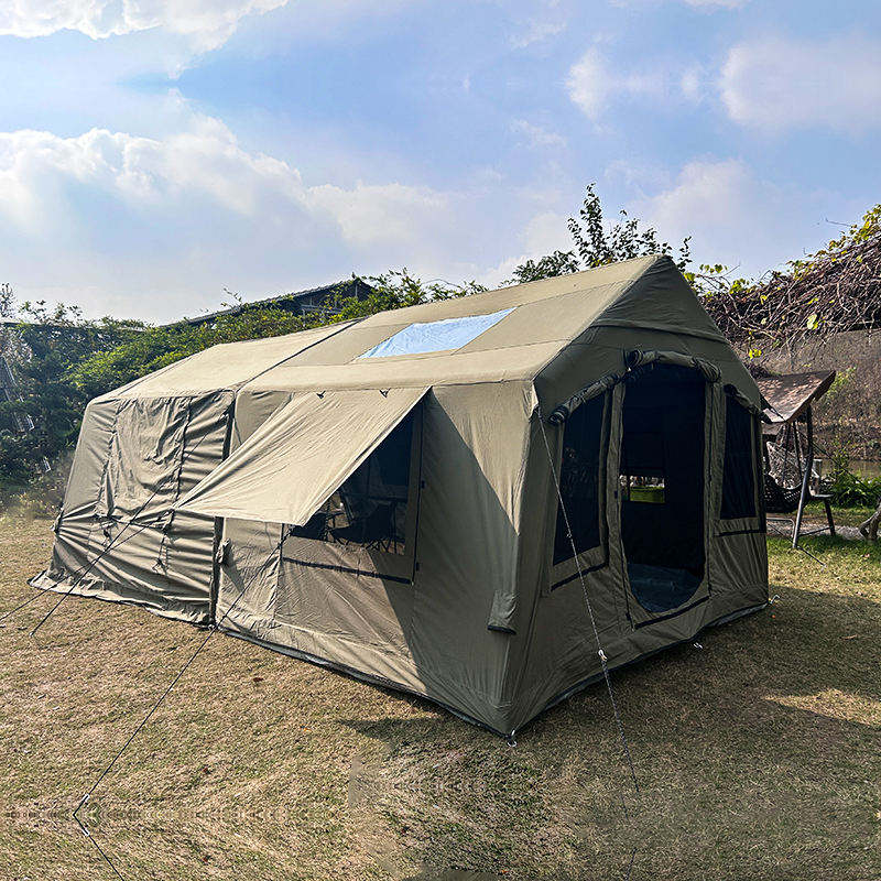 เต็นท์แคมป์ปิ้งพกพาสำหรับครอบครัวแบบเป่าลม ผ้า Oxford กันน้ำ ประตูคู่ หน้าต่างหลังคาขนาดใหญ่ สองห้องนอน ห้องนั่งเล่น ติดตั้งง่าย