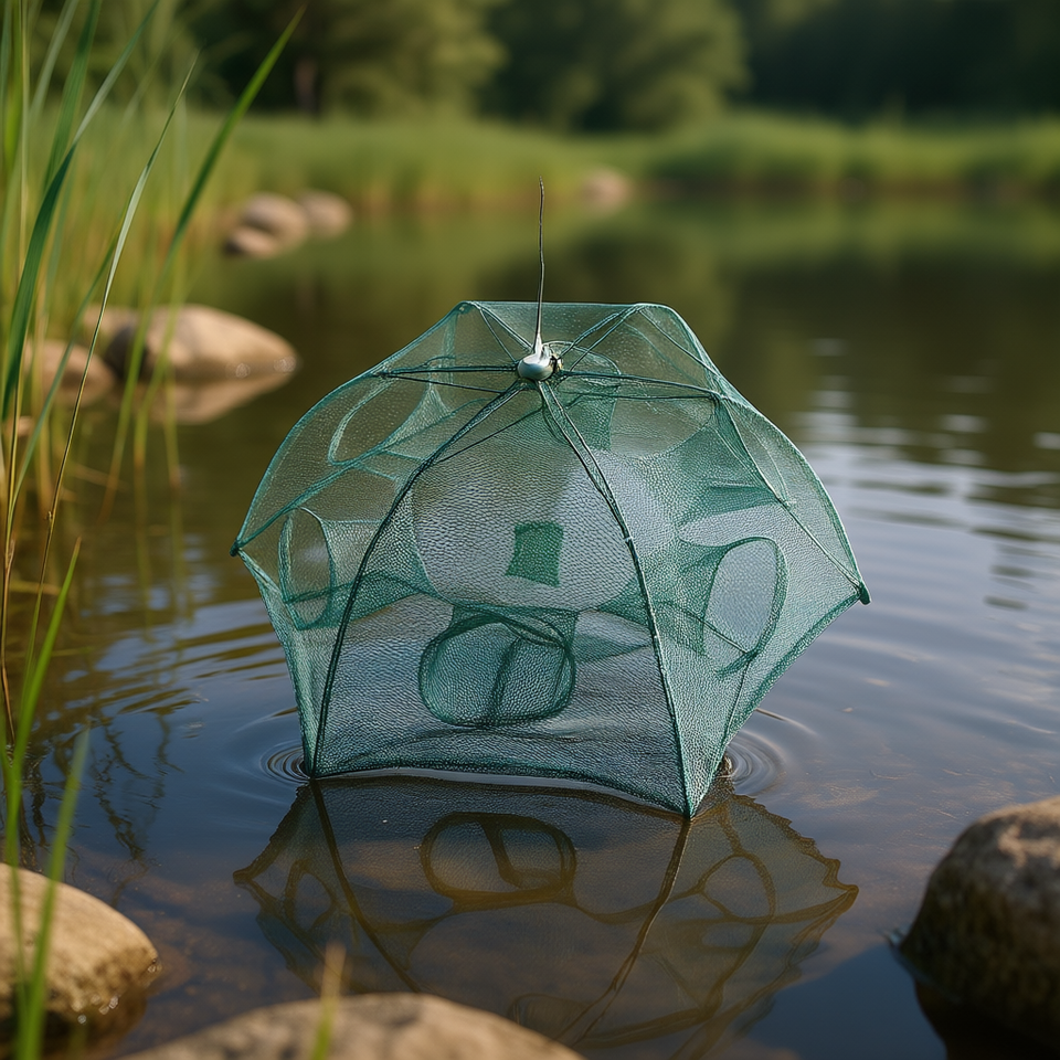 ตาข่ายดักปลาแบบพับได้ พกพาสะดวก ตาข่ายไนลอน 6 ด้าน สำหรับกั้ง ปลาเล็ก ปู กุ้งเครย์ฟิช ดีไซน์ปมเดี่ยว ตาข่ายดักแบบโยน รุ่น D0100XT4PR7
