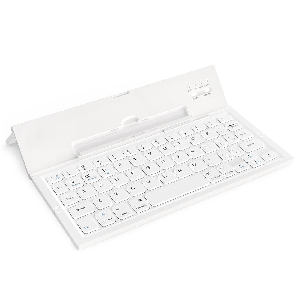 สวิตช์กรรไกรพับได้แบบพกพาขนาดเต็มสำหรับคีย์บอร์ดหลายปุ่มพร้อมขาตั้งสำหรับ iPhone iPad