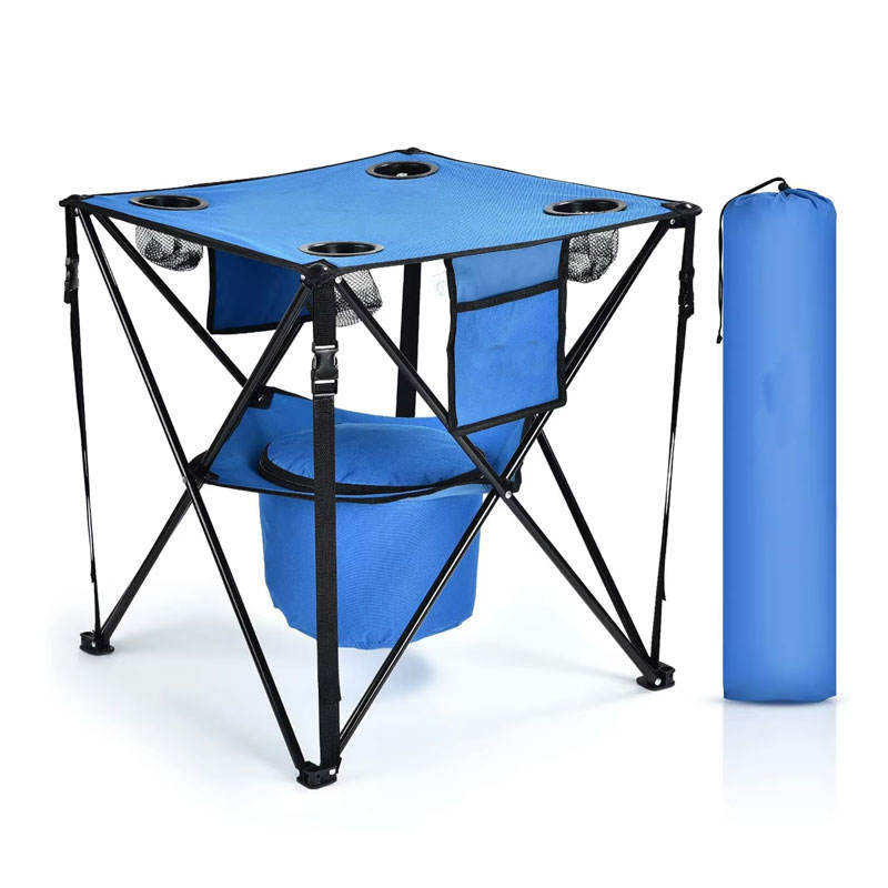 โต๊ะพับได้อลูมิเนียมแบบพกพา 4 ช่องวางแก้ว ดีไซน์ทันสมัย โต๊ะสำหรับตั้งแคมป์ พร้อมช่องเก็บความเย็นสำหรับอาหาร เฟอร์นิเจอร์สำหรับกิจกรรมกลางแจ้ง