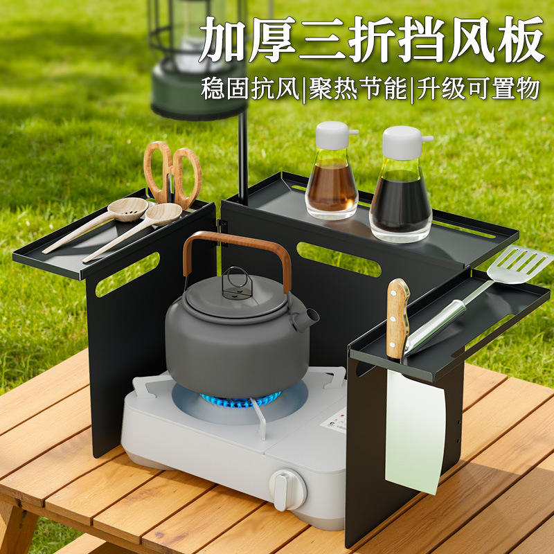 ฝาครอบเตาแคมป์ปิ้งแบบพับได้แบบพกพาพร้อมแผ่นปิดด้านบนกันลมอเนกประสงค์สำหรับการทำอาหารกลางแจ้ง