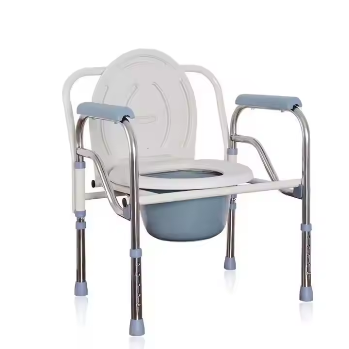 เก้าอี้นั่งถ่ายพับได้แบบพกพาสำหรับผู้พิการ พร้อมที่นั่งช่วยพยุง โครงสร้างพลาสติกและเหล็ก รับประกัน 1 ปี