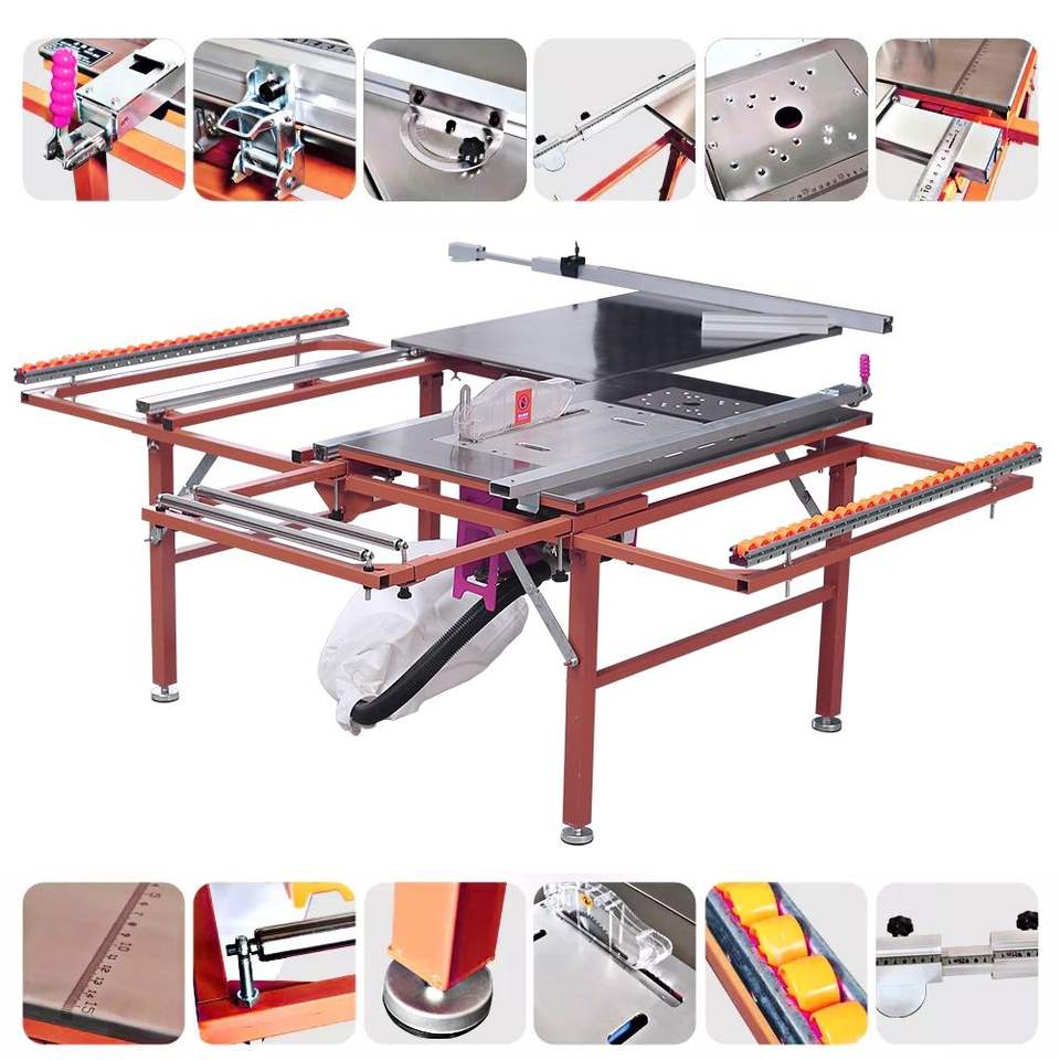เครื่องเลื่อยตั้งโต๊ะแบบพับได้แผงเลื่อนแนวนอนแบบวงกลมพร้อมมอเตอร์แกนสำหรับงานไม้และตัด
