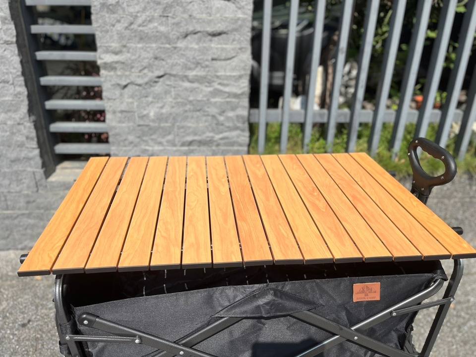 รถเข็นสองล้อแบบพกพาสำหรับตั้งแคมป์พร้อมโต๊ะอลูมิเนียมสำหรับชายหาดกลางแจ้งของครอบครัว
