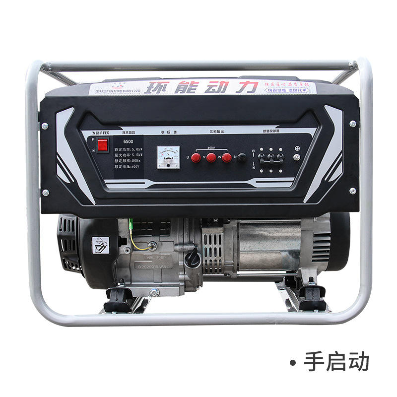 เครื่องกำเนิดไฟฟ้าเบนซินแบบพกพา 6.5 กิโลวัตต์ 220 โวลต์ 380 โวลต์ เครื่องยนต์ระบายความร้อนด้วยอากาศแบบเฟสเดียวและสามเฟส สตาร์ทด้วยมือ สำหรับใช้ในบ้าน