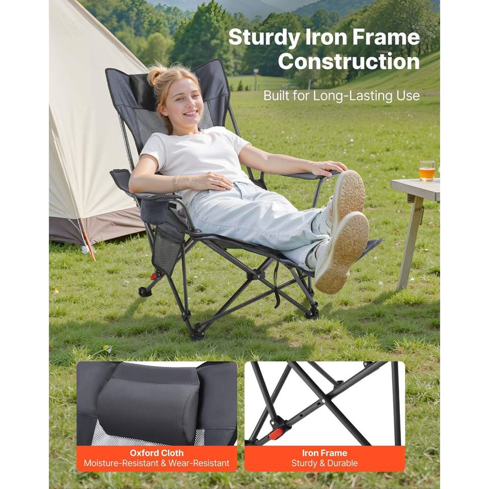 เก้าอี้สำหรับลานบ้านสีเทาแบบพกพาปรับได้4ตำแหน่งปรับเอนได้เก้าอี้ตาข่ายชายหาดพนักพิงศีรษะรองรับที่วางเท้า