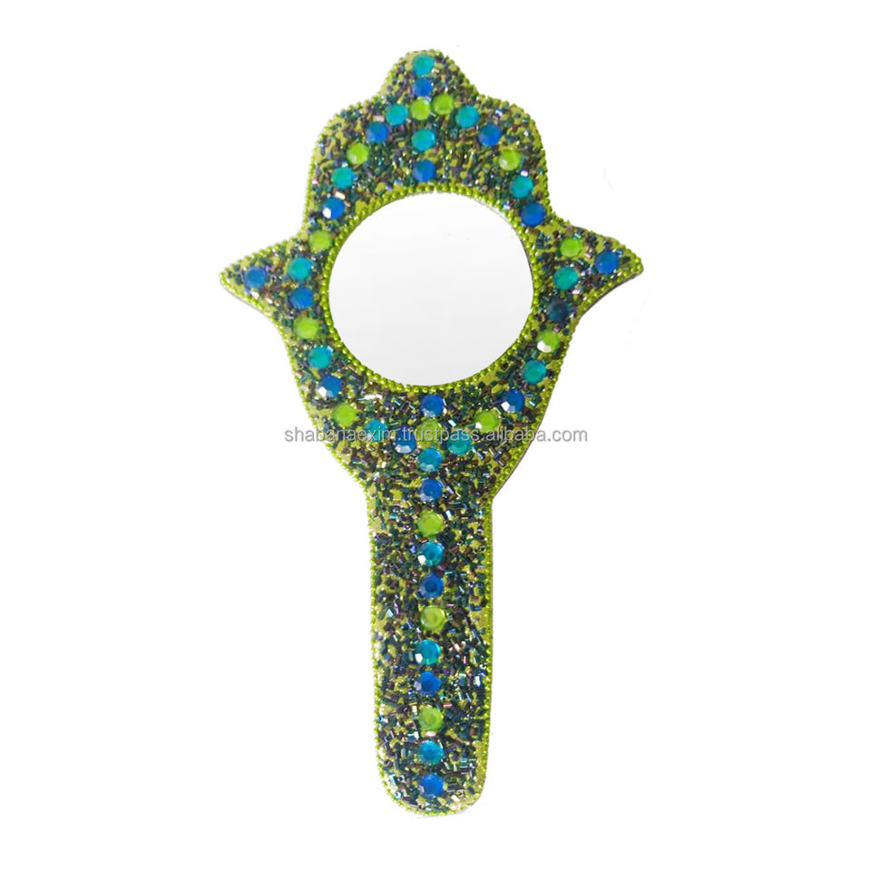 กระจกมือถือแบบพกพาประดับลูกปัดวิ้งๆ ราคาประหยัด สำหรับดูแลความงาม กระจกแต่งหน้าแบบถือ