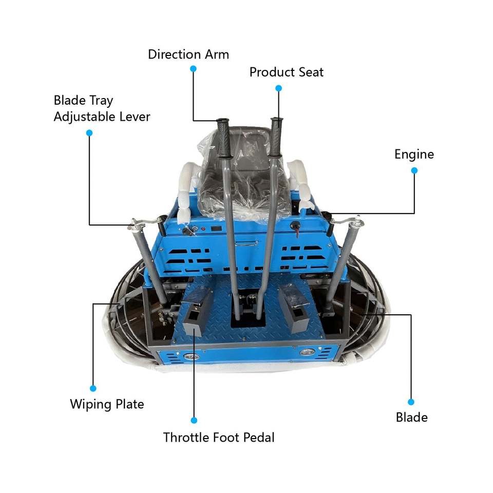 เครื่องขัดคอนกรีตแบบนั่งขับยี่ห้อ Huiteng พร้อมเครื่องยนต์ 25-27 แรงม้า และเส้นผ่านศูนย์กลางการทำงาน 1000 มม. สำหรับงานตกแต่งพื้นที่ที่ต้องบำรุงรักษาต่ำ