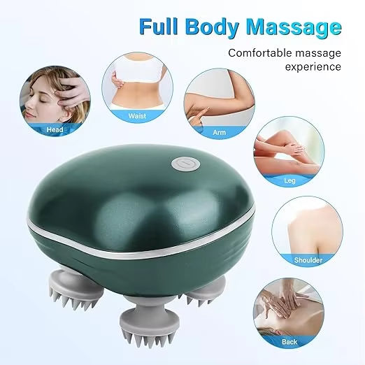 เครื่องนวดศีรษะไฟฟ้าแบบพกพา กันน้ำ นวดกระตุ้นหนังศีรษะ พร้อมแสงสีแดง ระบบสั่นสะเทือน 3 มิติ ซิลิโคนนวดลึก ชาร์จผ่าน USB
