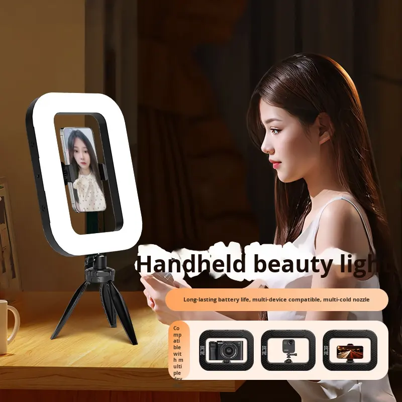 ไฟวงแหวนพกพาแบบมือถือ สำหรับถ่ายภาพนอกสถานที่ ไฟ LED ไฮไลท์ สำหรับไลฟ์สด ความงาม ทนทาน ผลิตจากพลาสติก ใช้ได้ทั้งแบบตั้งโต๊ะและแบบพกพา