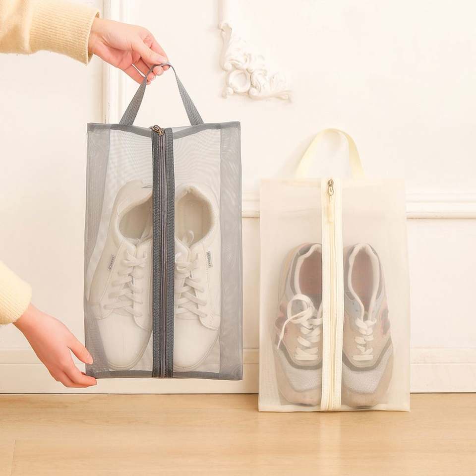 กระเป๋าเก็บรองเท้าพกพาแบบถือมีซิปไนลอนแบบพกพาตาข่ายระบายอากาศได้ดีถุงเก็บรองเท้ากันฝุ่น