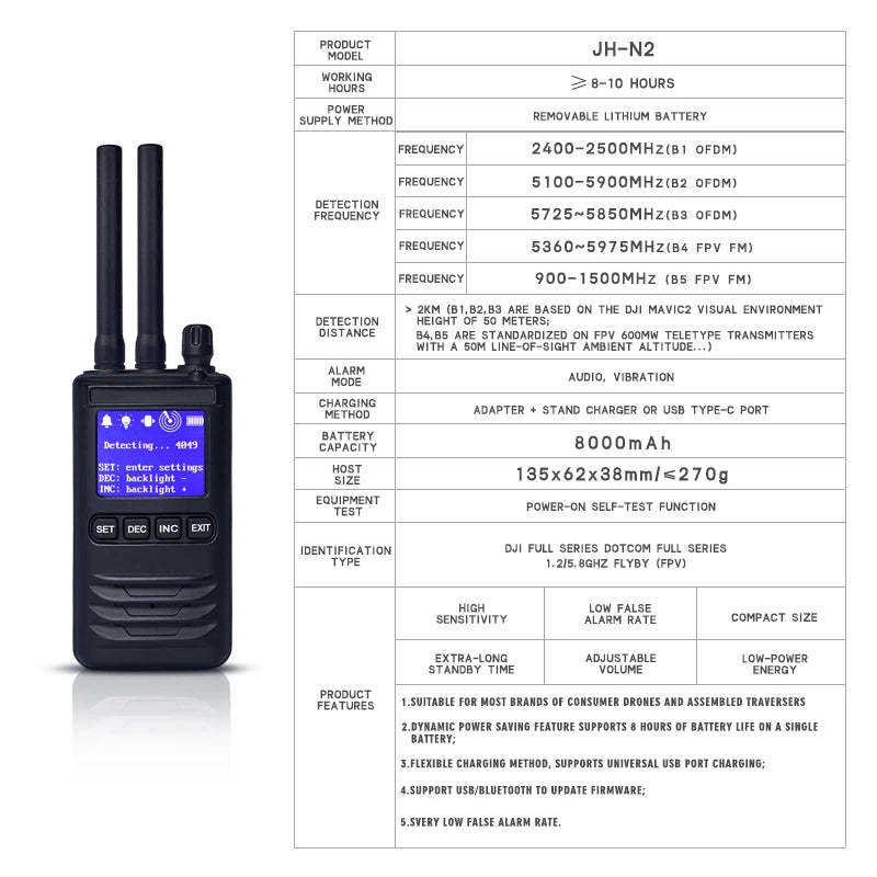 เครื่องตรวจจับโดรนแบบพกพา 1000-3000 เมตร 2.4G 5.8G ระบบตรวจจับโดรน