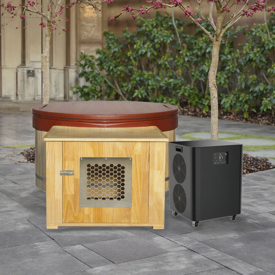 เครื่องทำน้ำแข็งแบบพกพาเครื่องทำความเย็นแบบเย็นเครื่องทำน้ำเย็นแบบ1HP 0.5HP 1.5HP ด้วยถังไม้สำหรับซาวน่าสปา