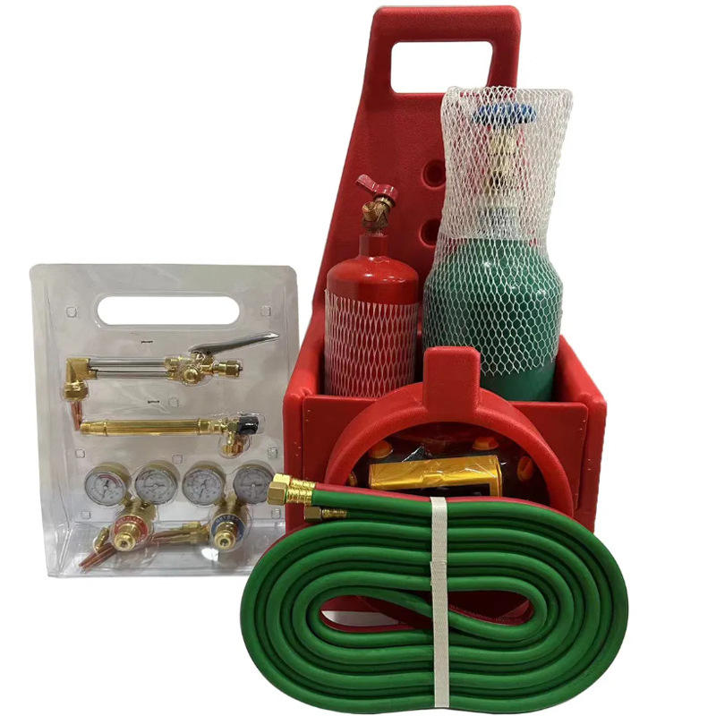 ชุดเชื่อมขนาดเล็กแบบพกพาสำหรับงานอุตสาหกรรม พร้อมหัวเชื่อมทองเหลืองแบบอเมริกันและถังแก๊ส รวมถึงกระเป๋าสำหรับพกพา สำหรับงานตัดและเชื่อม