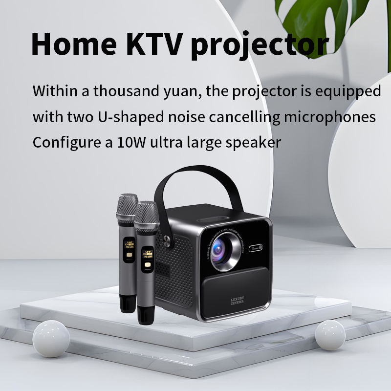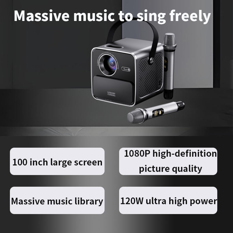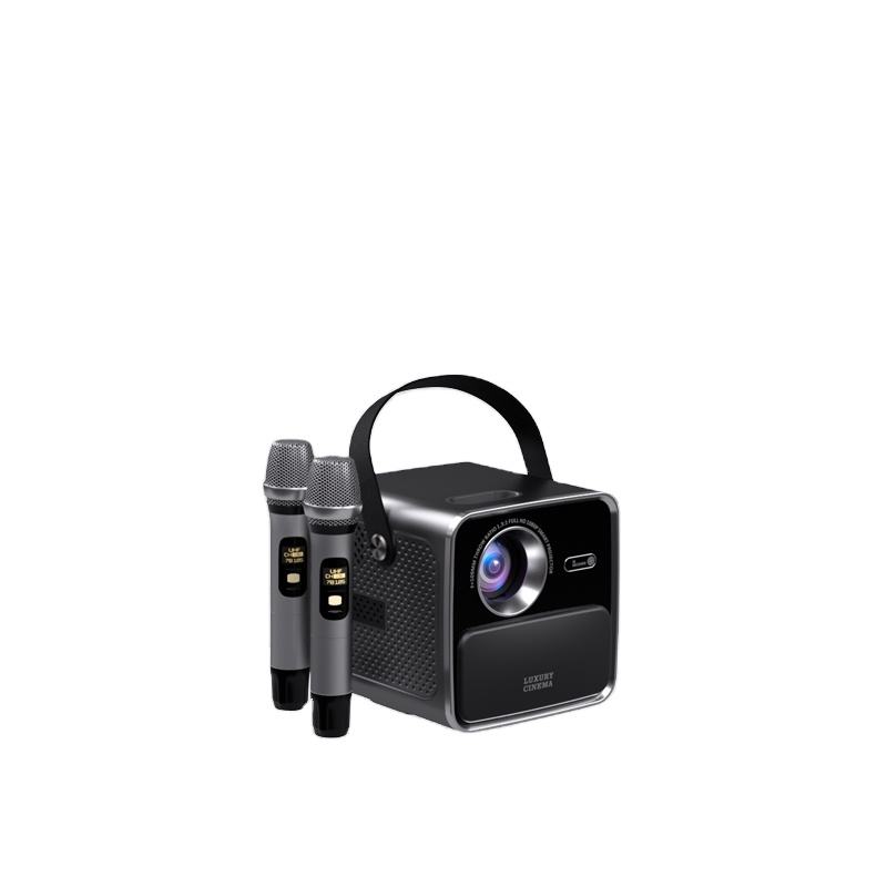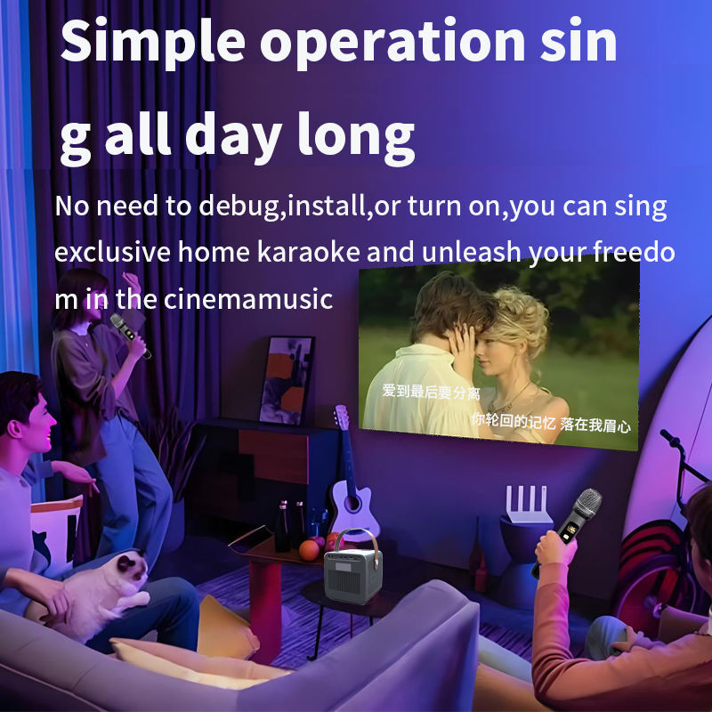 เครื่องฉายคาราโอเกะแบบพกพาพร้อมไมโครโฟนคู่คุณภาพเสียงคมชัดสูงแบบไร้สาย